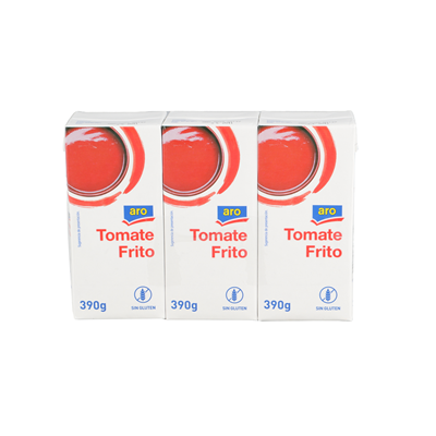 Tomate frito envasado en brik de 390 gramos. Pack de 3 brik.